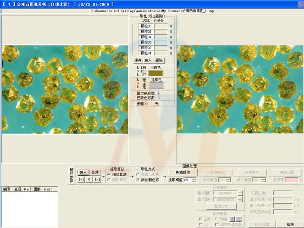模塊7 金剛石圖像分析(自動(dòng)計(jì)算):先人工選擇顏色,再進(jìn)行分析。