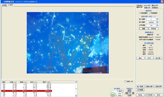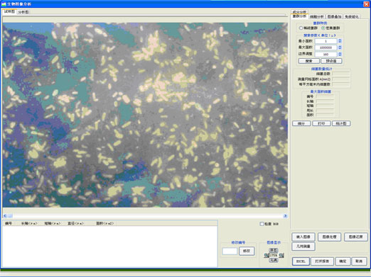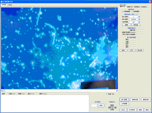 l  自動分析:用戶可通過該功能分析細菌圖像中細菌的長度、直徑、體積、個數(shù)和每個細菌的幾何參數(shù)。