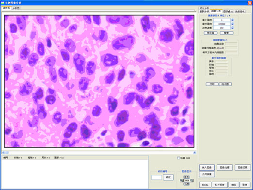 GM-SW2000生物分析軟件系統(tǒng)是上海光密儀器公司為醫(yī)學(xué)檢驗的單位或個人專門開發(fā)的一套計算機軟件系統(tǒng),生物分析軟件主要模塊有細胞分析,菌群分析,成分分析,顆料分析,免疫組化,圖像疊加等功能。它的基本原理是:計算機圖像處理系統(tǒng)所采集的圖像都有一個固定的X-Y比例,它是由生物顯微鏡、攝像頭、圖像采集卡、計算機、處理軟件、采集圖像分辨率、顯示器分辨率等軟、硬件環(huán)境共同決定的,其數(shù)據(jù)的含義是: 在當(dāng)前的軟、硬件條件下,顯示器的一個像素,代表的實際長度值。應(yīng)用圖像軟件進行圖像分析時,必須先設(shè)定當(dāng)前環(huán)境下的硬件參數(shù),才能保證系統(tǒng)測量數(shù)據(jù)的真實性和準(zhǔn)確性,否則,得出的結(jié)果將不準(zhǔn)確。當(dāng)軟、硬件環(huán)境發(fā)生變化后,該參數(shù)必須作相應(yīng)的變更。參數(shù)測得后,應(yīng)使用本軟件的"幾何測量"功能,對已知尺寸的測微尺圖像進行測量,以驗證數(shù)據(jù)的準(zhǔn)確性。用視頻采集卡或數(shù)碼相機等硬件設(shè)備,采集到顯微鏡中的偏光圖片,再對該圖片進行處理和分析,得到相關(guān)檢驗結(jié)果。